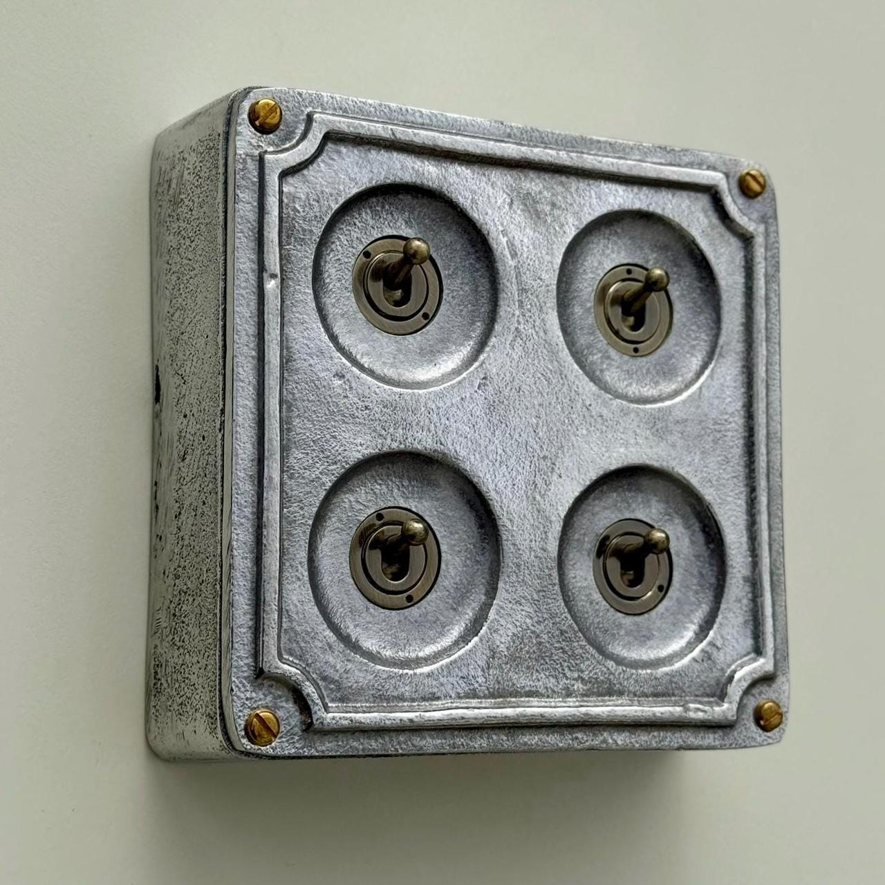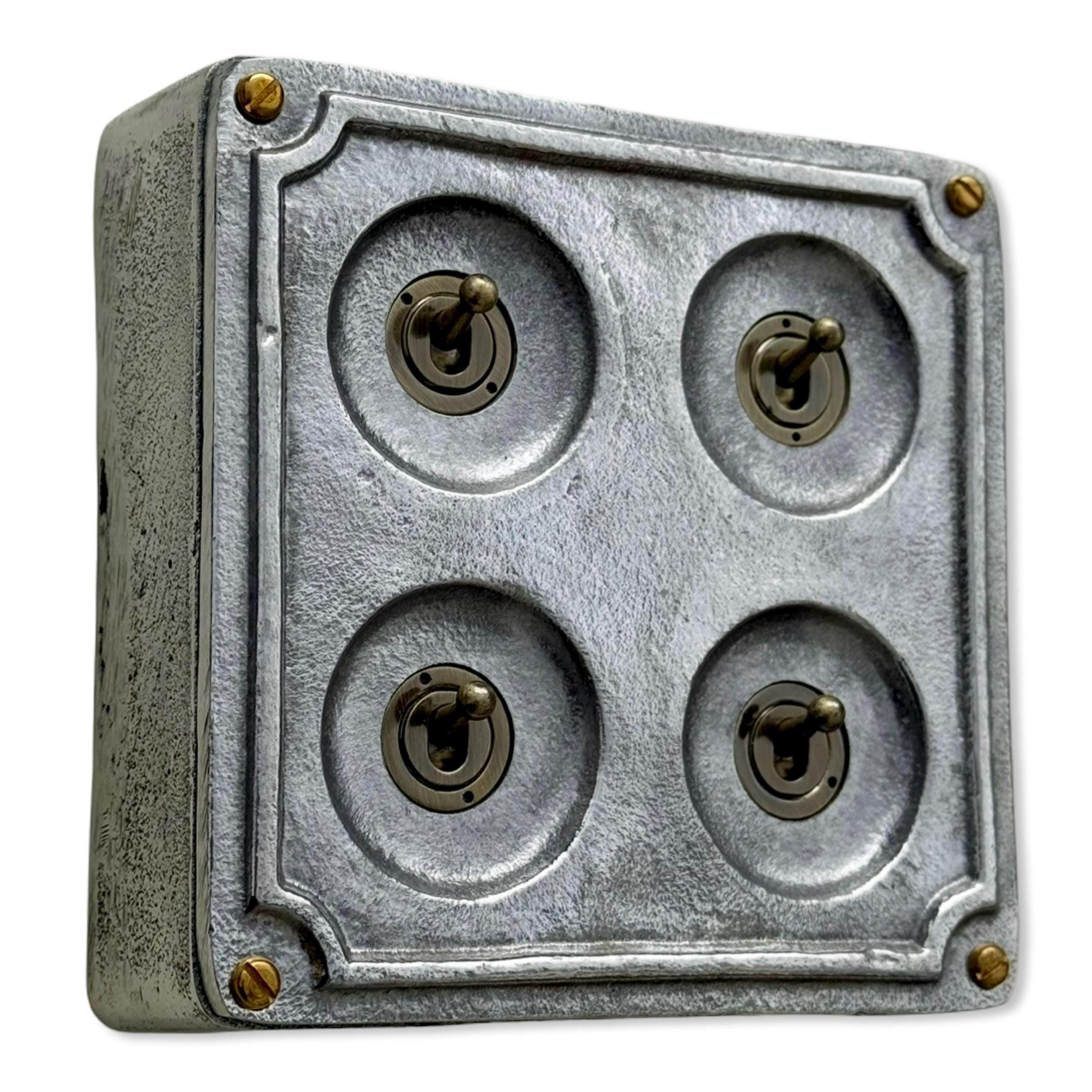 4 Gang 2 Way Switch Solid Cast Metal Light Switch 1950’S Industrial Style Vintage - BS EN Approved