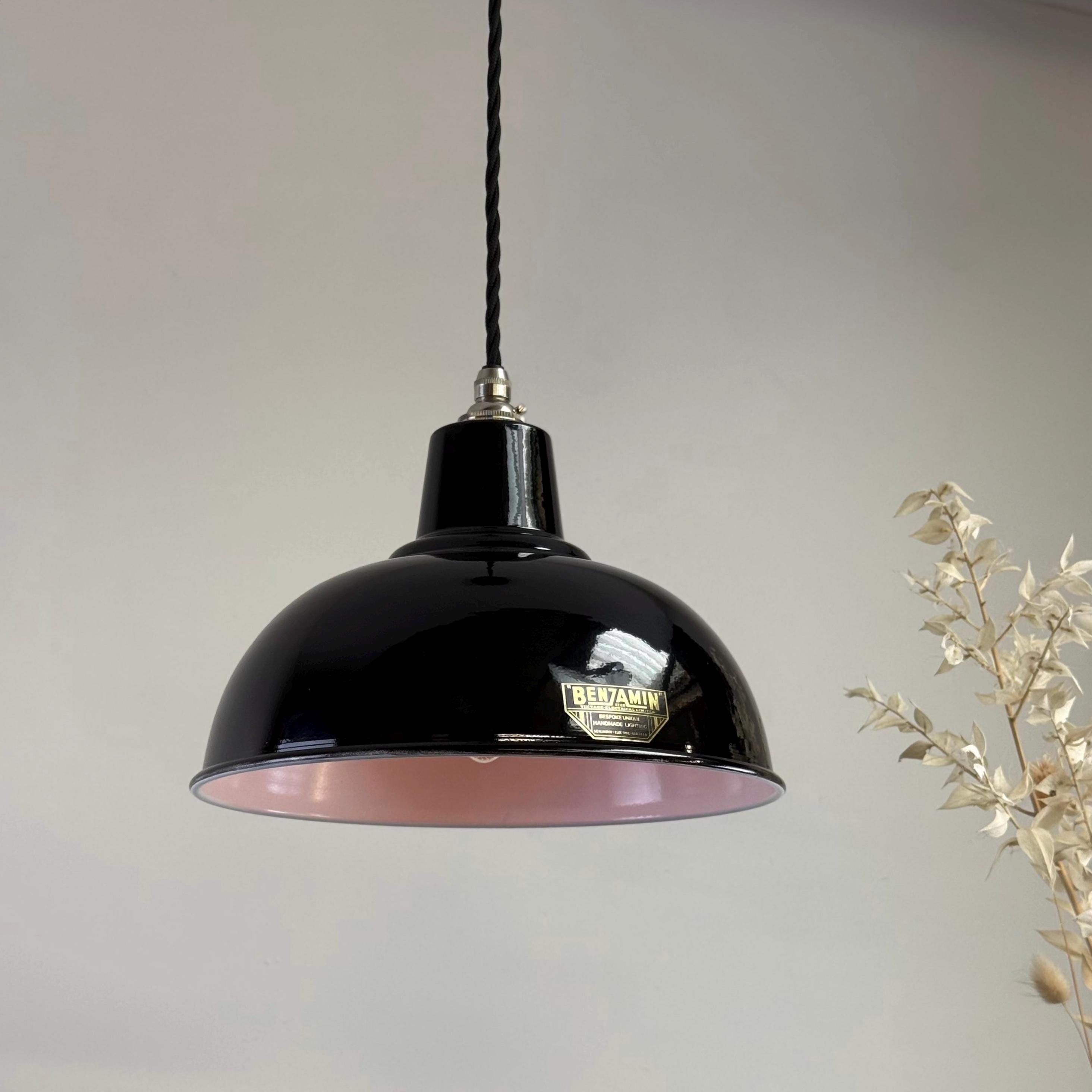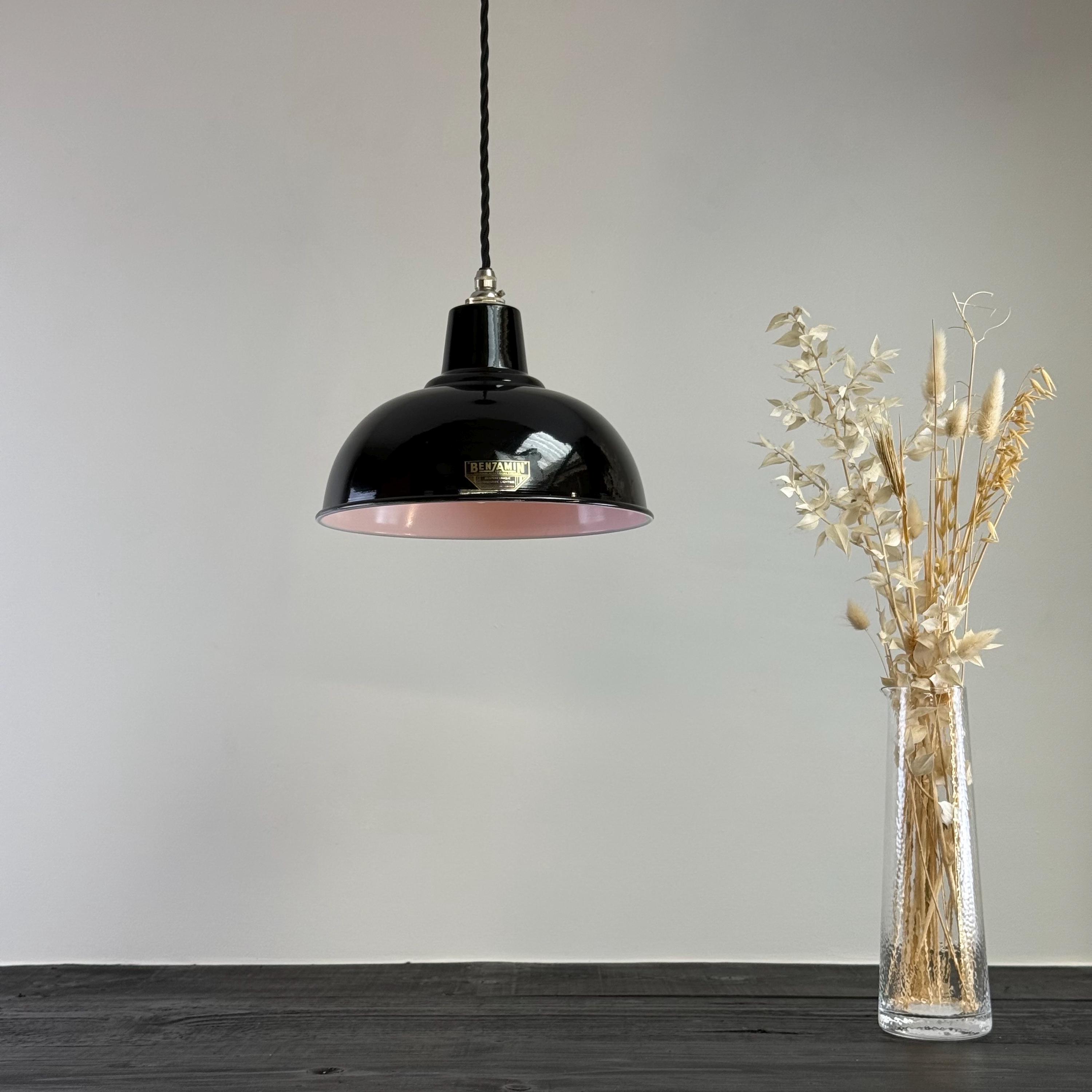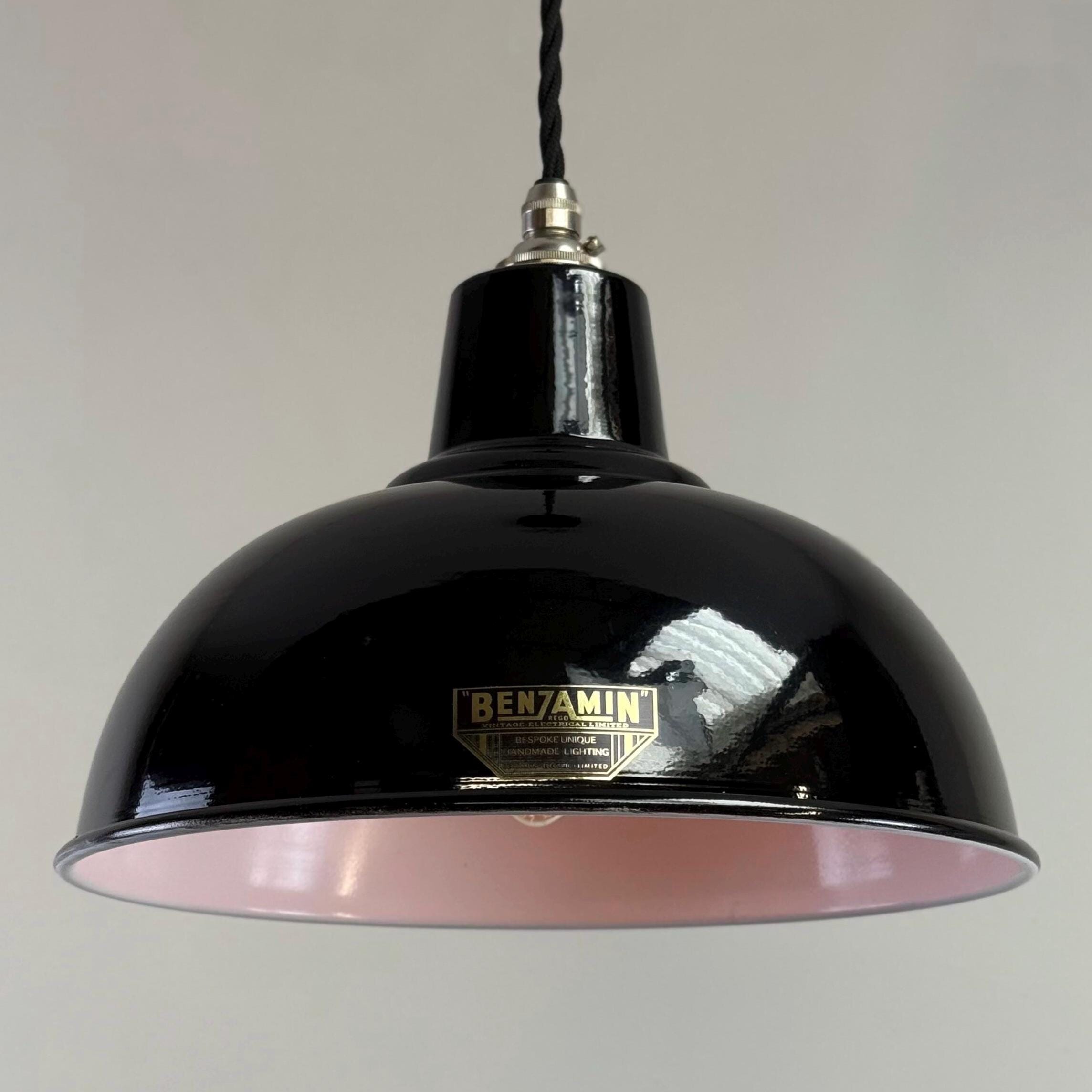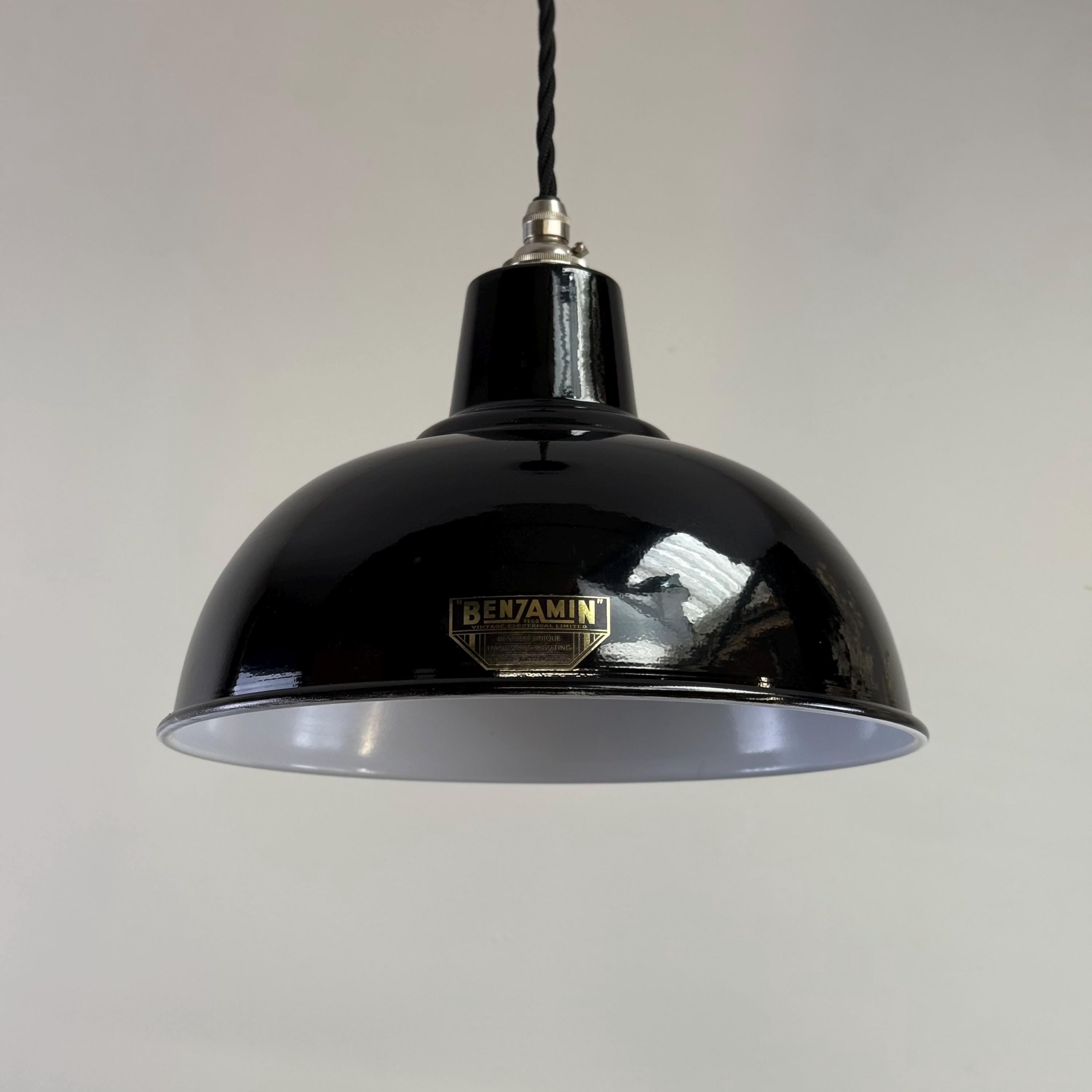 High quality hand spun solid steel shade and enamel finished in midnight black.
