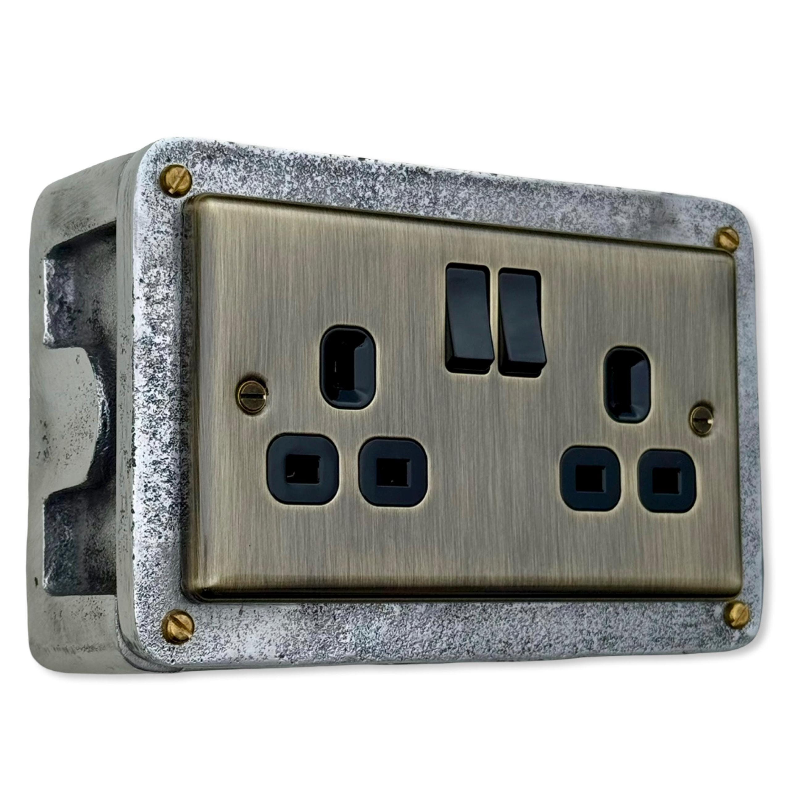 Double Power Antique Brass Socket Solid Cast Metal 1950’S Industrial Style Vintage - BS EN Approved