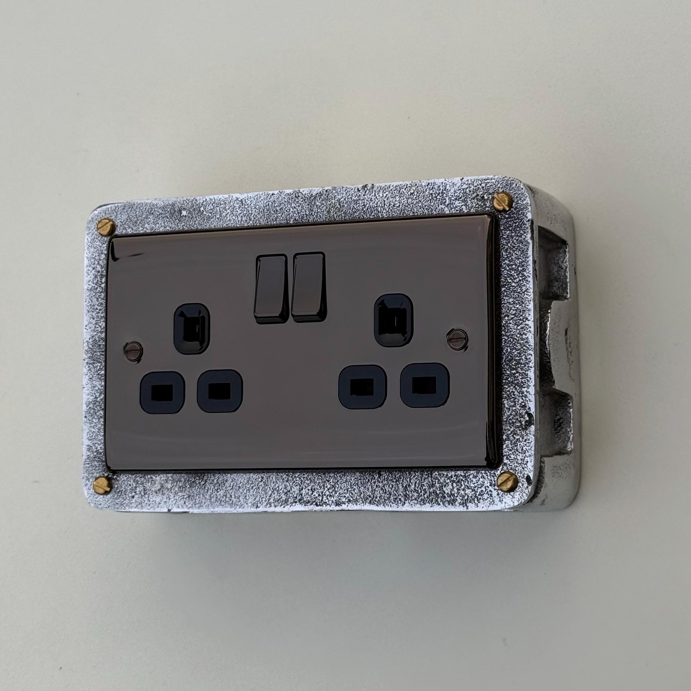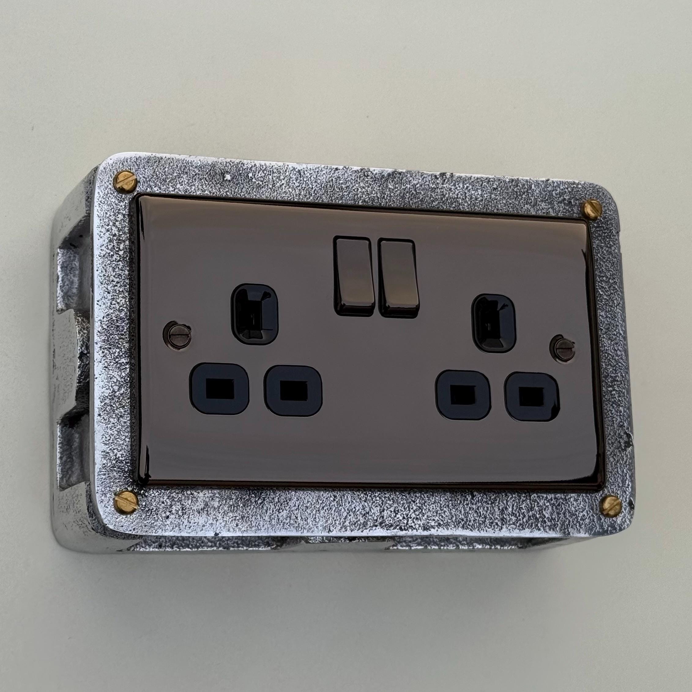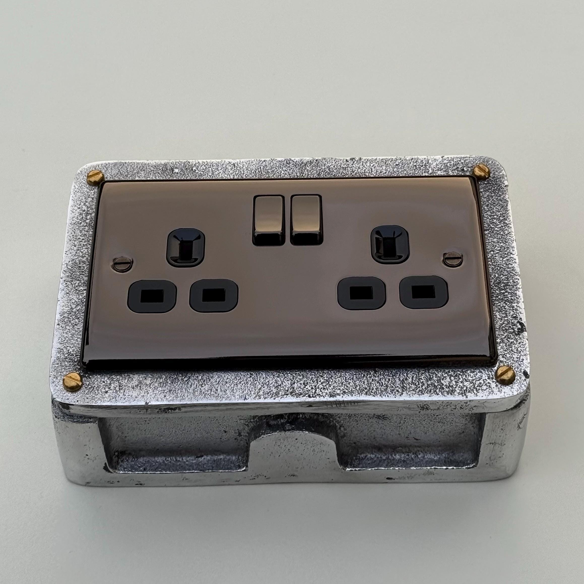 Double Power Black Nickel Socket Solid Cast Metal 1950’S Industrial Style Vintage - BS EN Approved