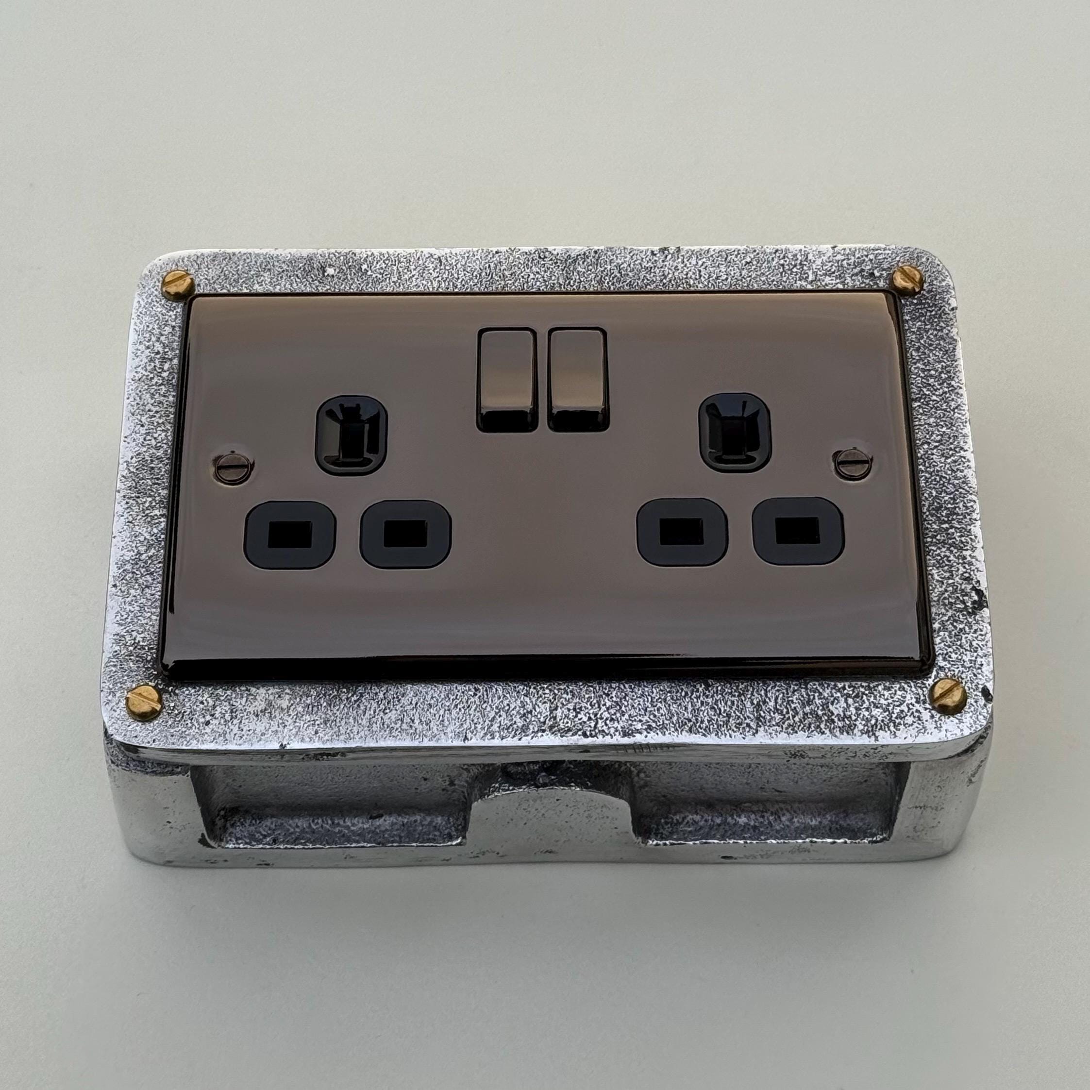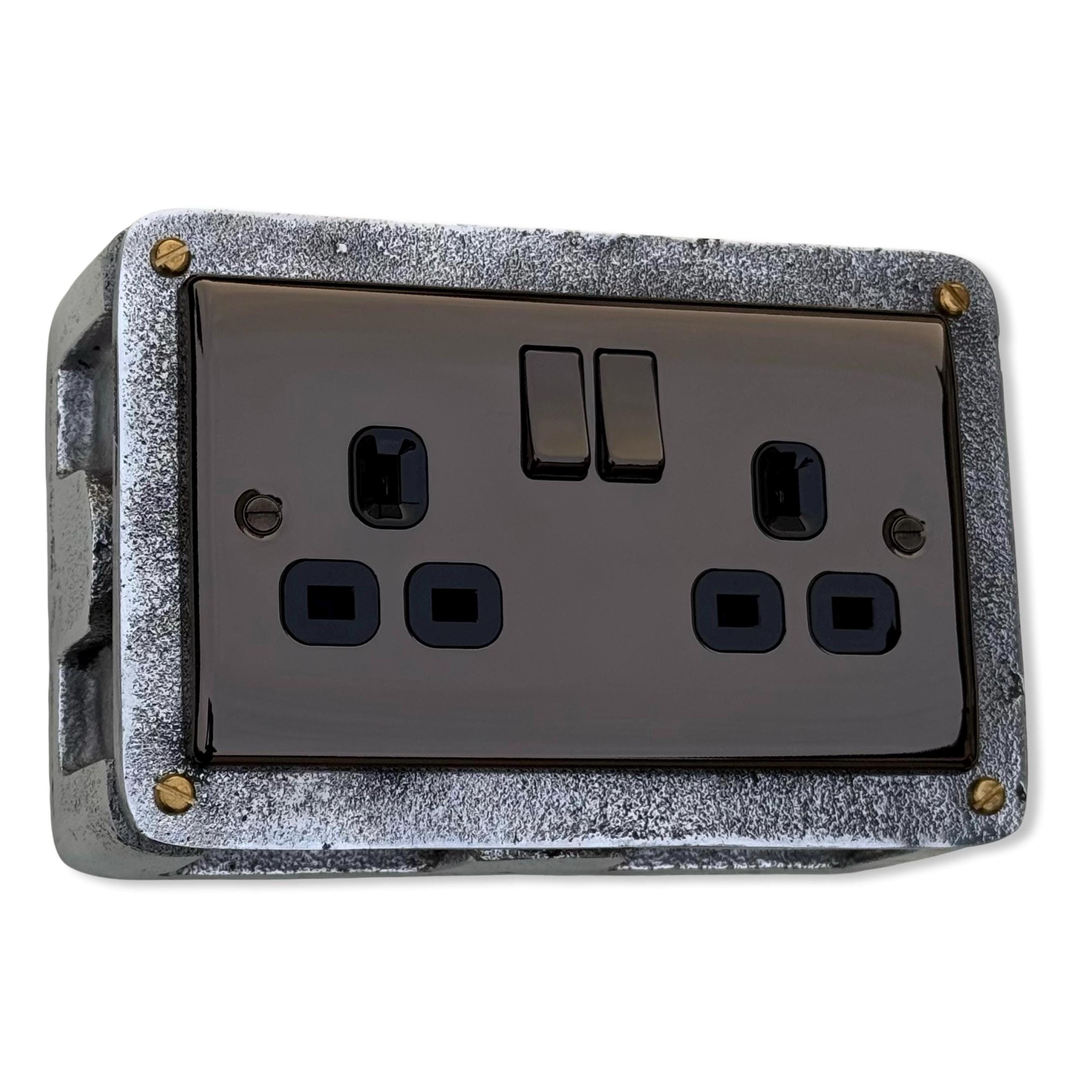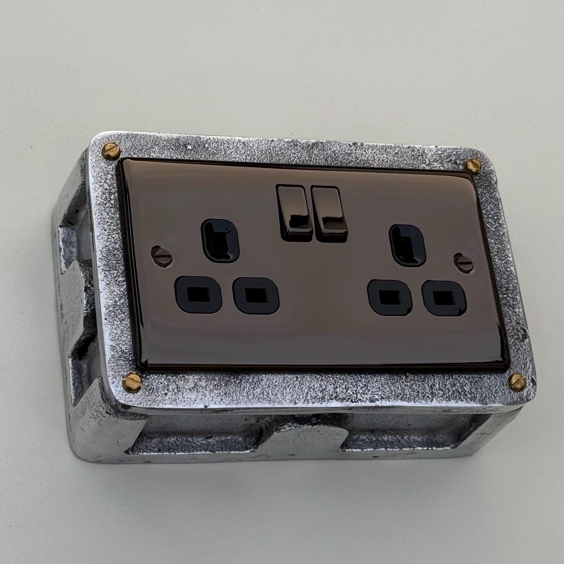 Double Power Black Nickel Socket Solid Cast Metal 1950’S Industrial Style Vintage - BS EN Approved