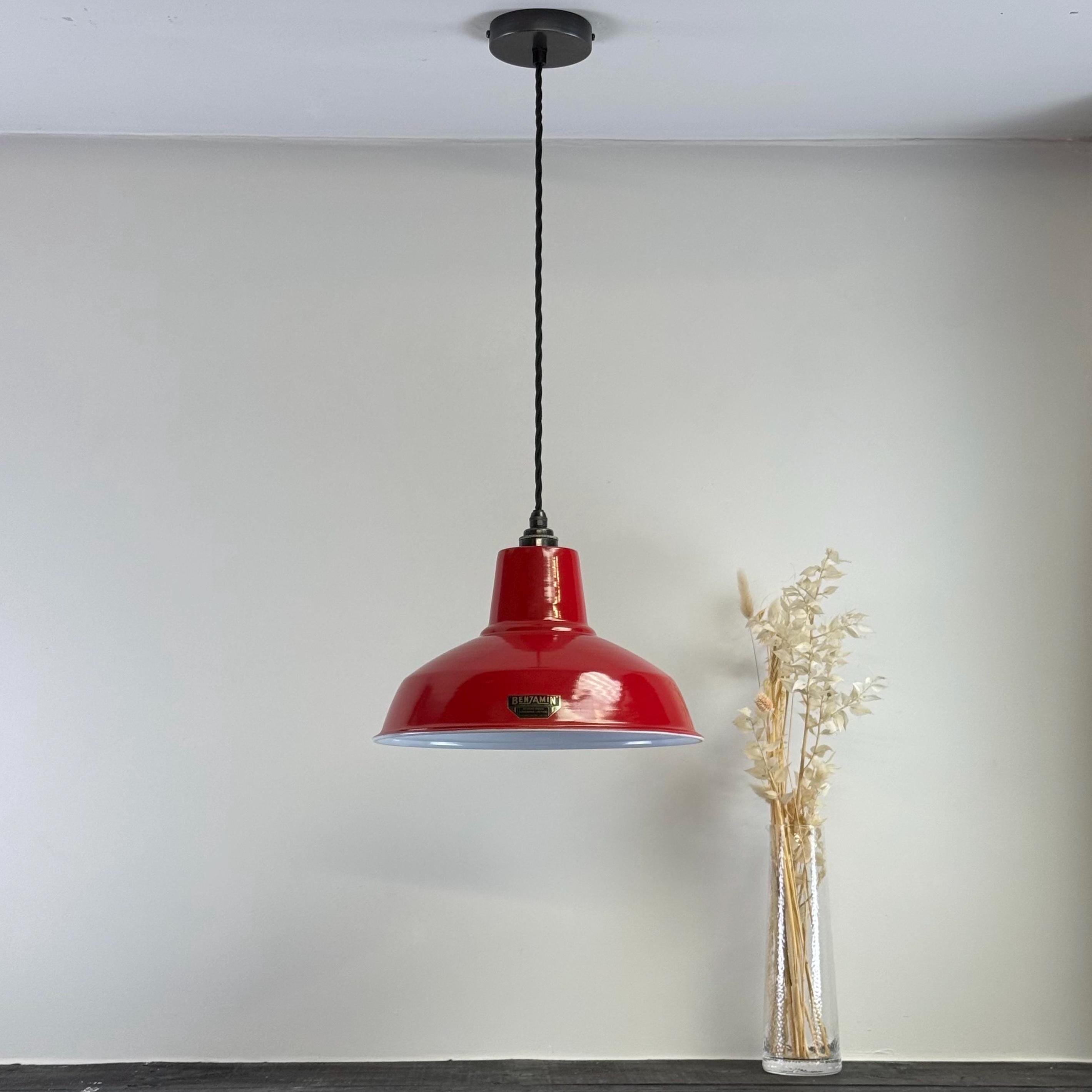 Shop our timeless pendant lighting, handspun from solid steel & finished in British red via an enamel gloss finish with pride by our artisans.