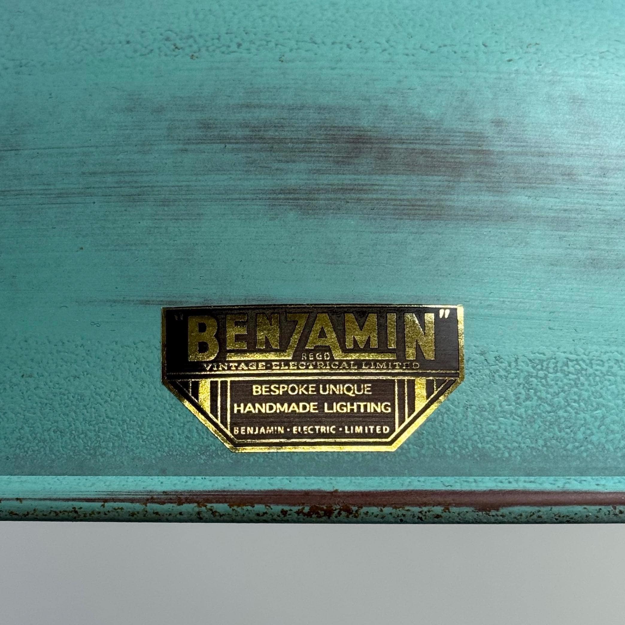 Handcrafted with a beautiful fusion of craftsmanship and character. With a gently distressed turquoise tone, the metal shade creates a soft industrial aesthetic that pairs beautifully with wood, brick, or neutral interiors.