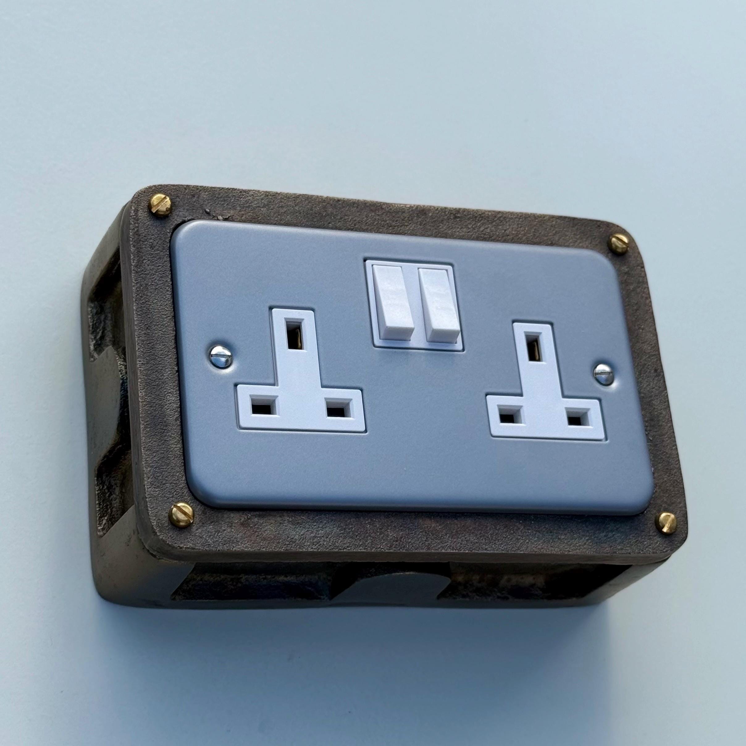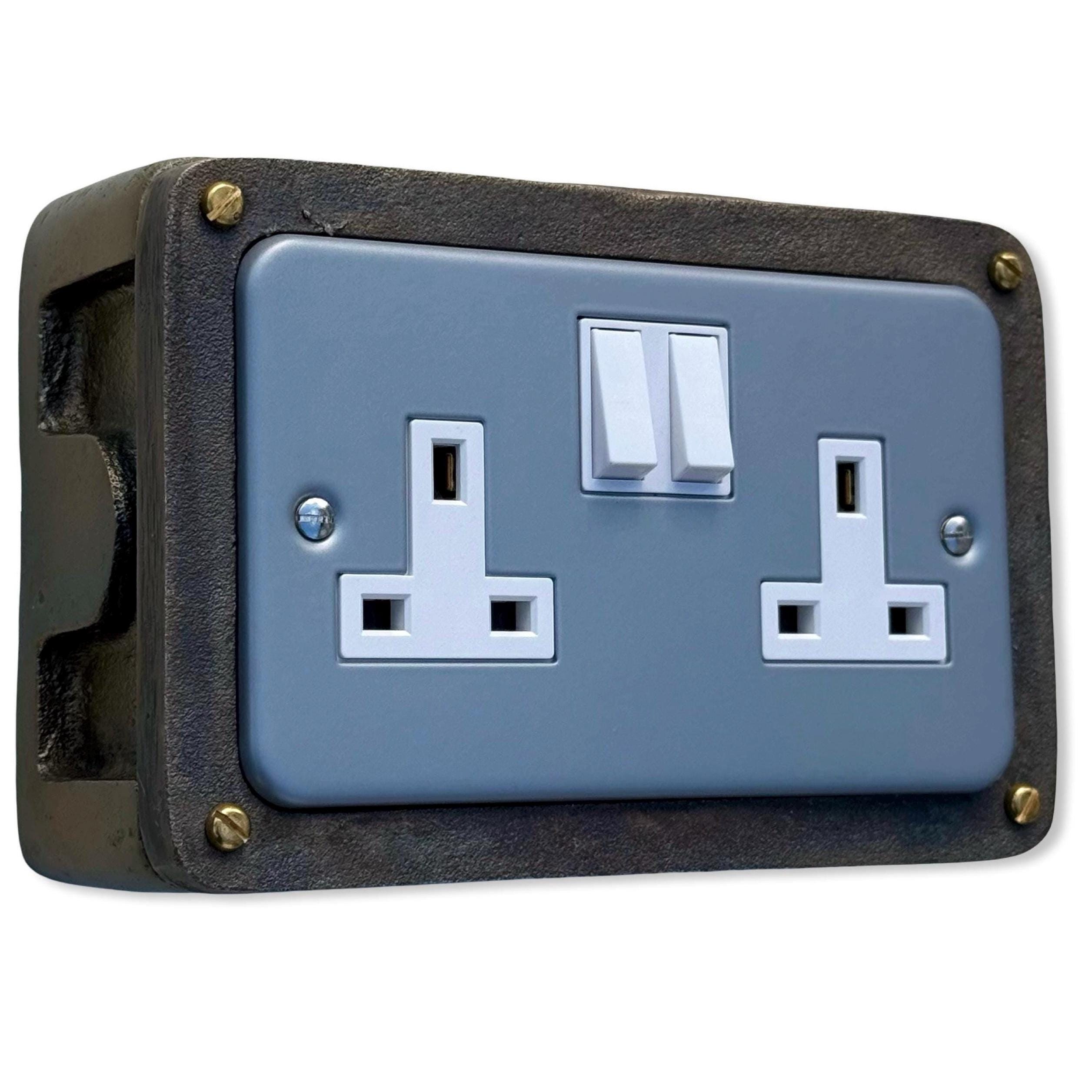 Double Power Socket Solid Cast Metal finished In Antique Brass - BS EN Approved