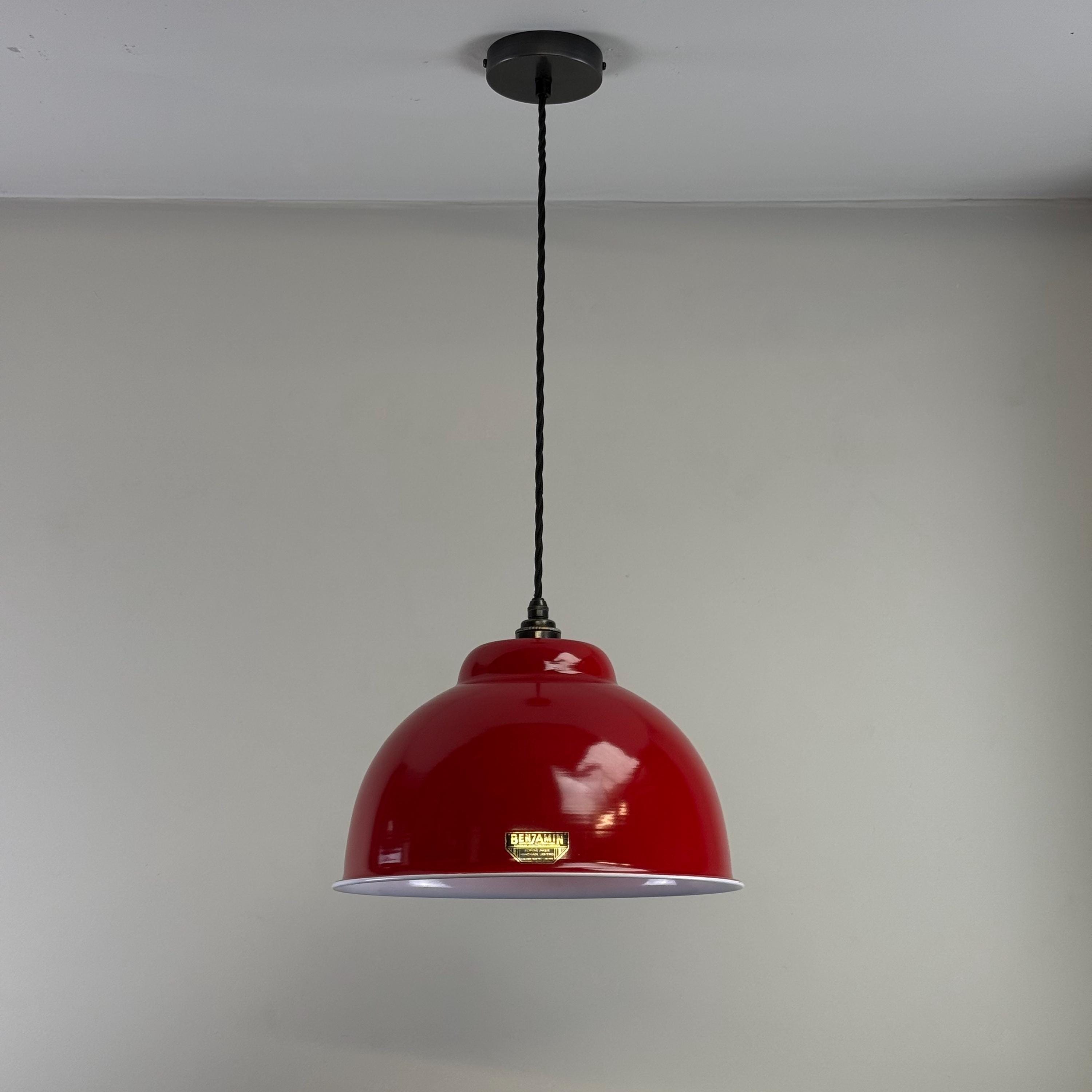 Shop our timeless pendant lighting, handspun from solid steel & finished in British red via an enamel gloss finish with pride by our artisans.