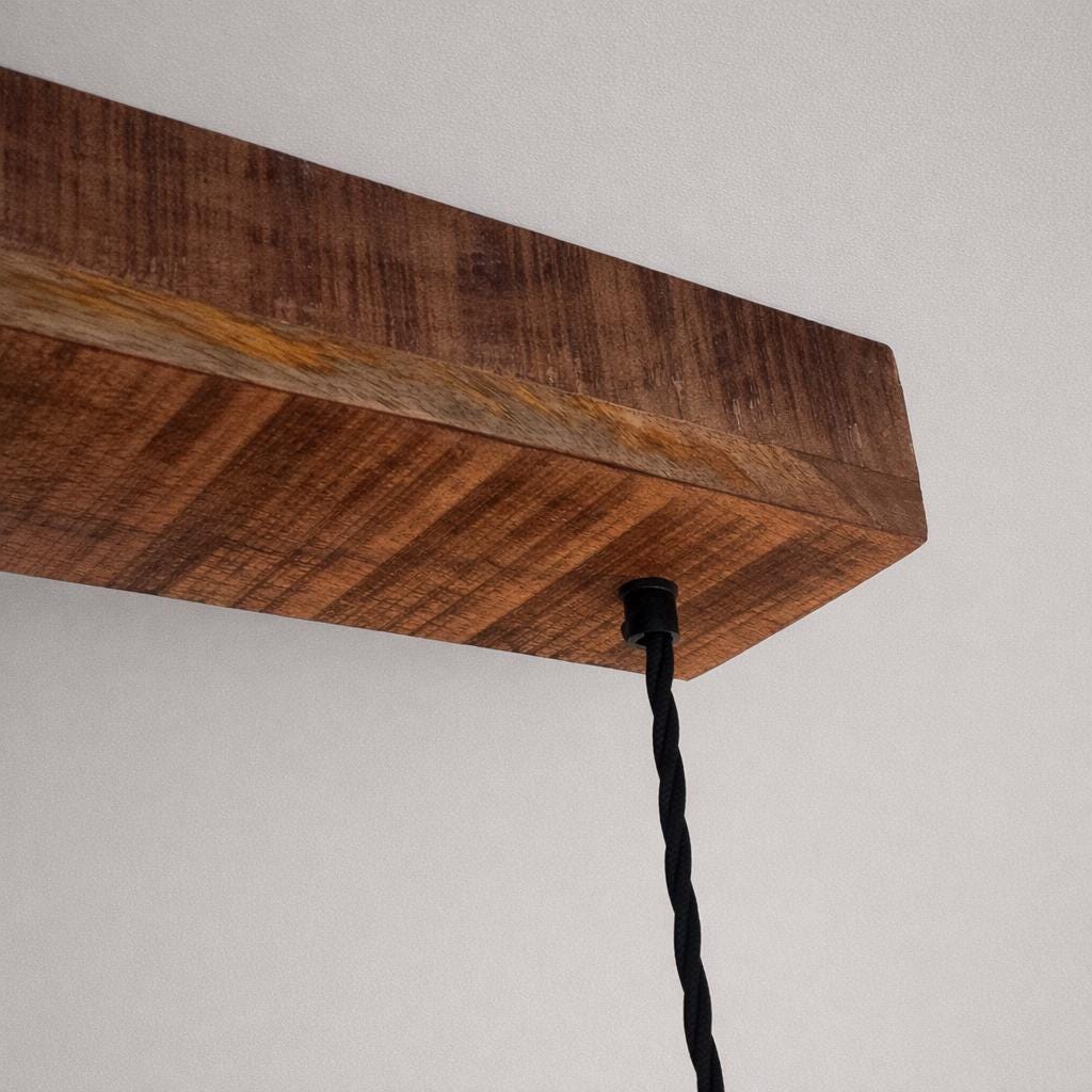 Alby ~ Our handmade 3 x shades & mango wood triple track pendant light, specifically for your chosen place. Turn one single supply into 3 lights with our track ready for an easy install, we pre-wire the holders for you.