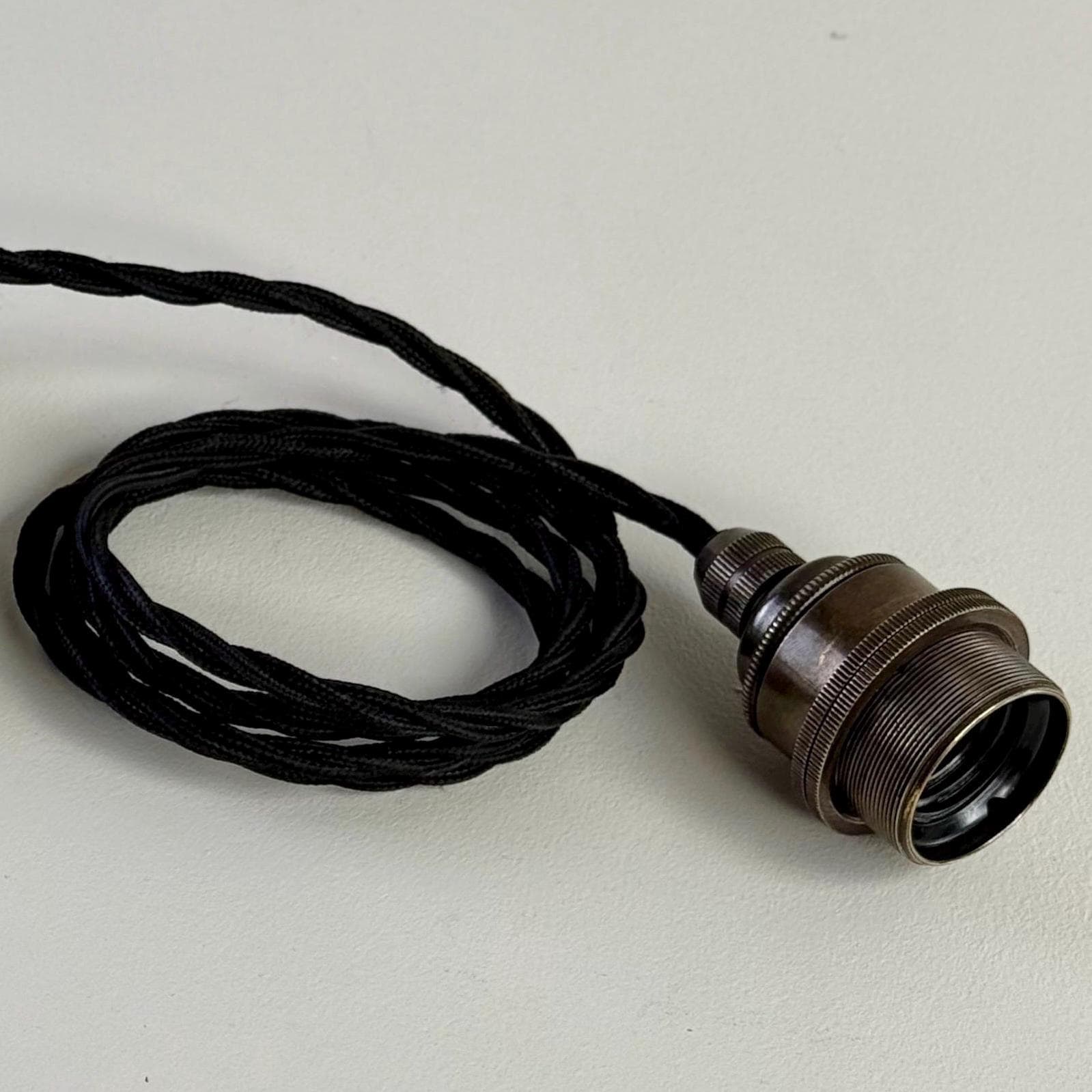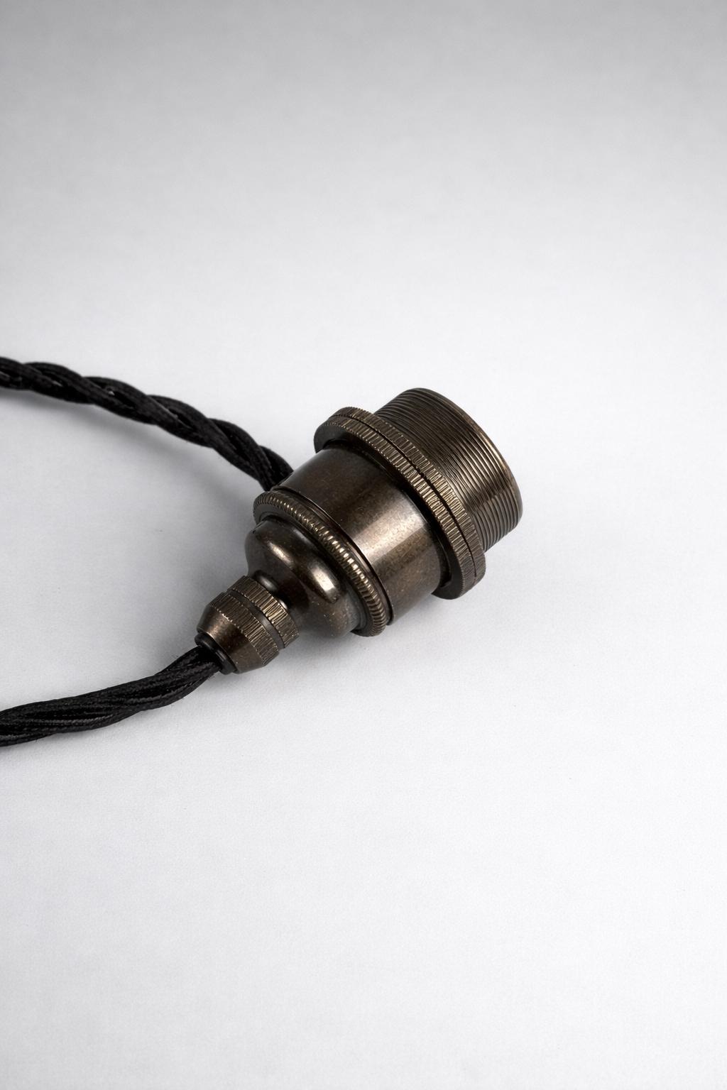 3 x Single bronze bulb holders pre-wired with black vintage twist fabric flex cable connected to the holder only, enabling height to be easily adjusted to suit desired drop height (Each with cable length of 150cm / 59” - electrician recommended for installation). We supply with all the electrical fittings that are needed, for an easy install).
