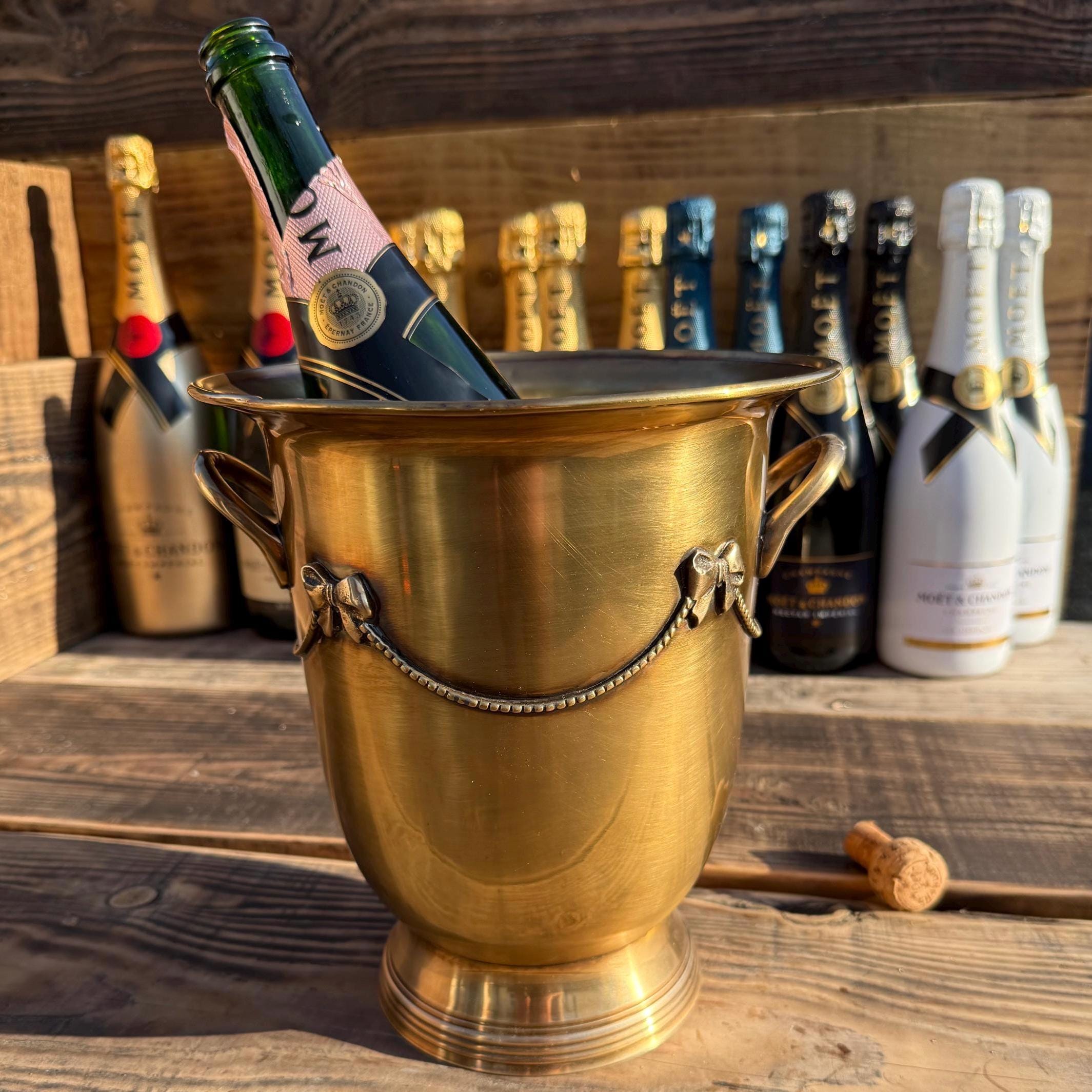 Handcrafted solid brass ice bucket collection has the Substantial presence of vintage French brasserie wares.
