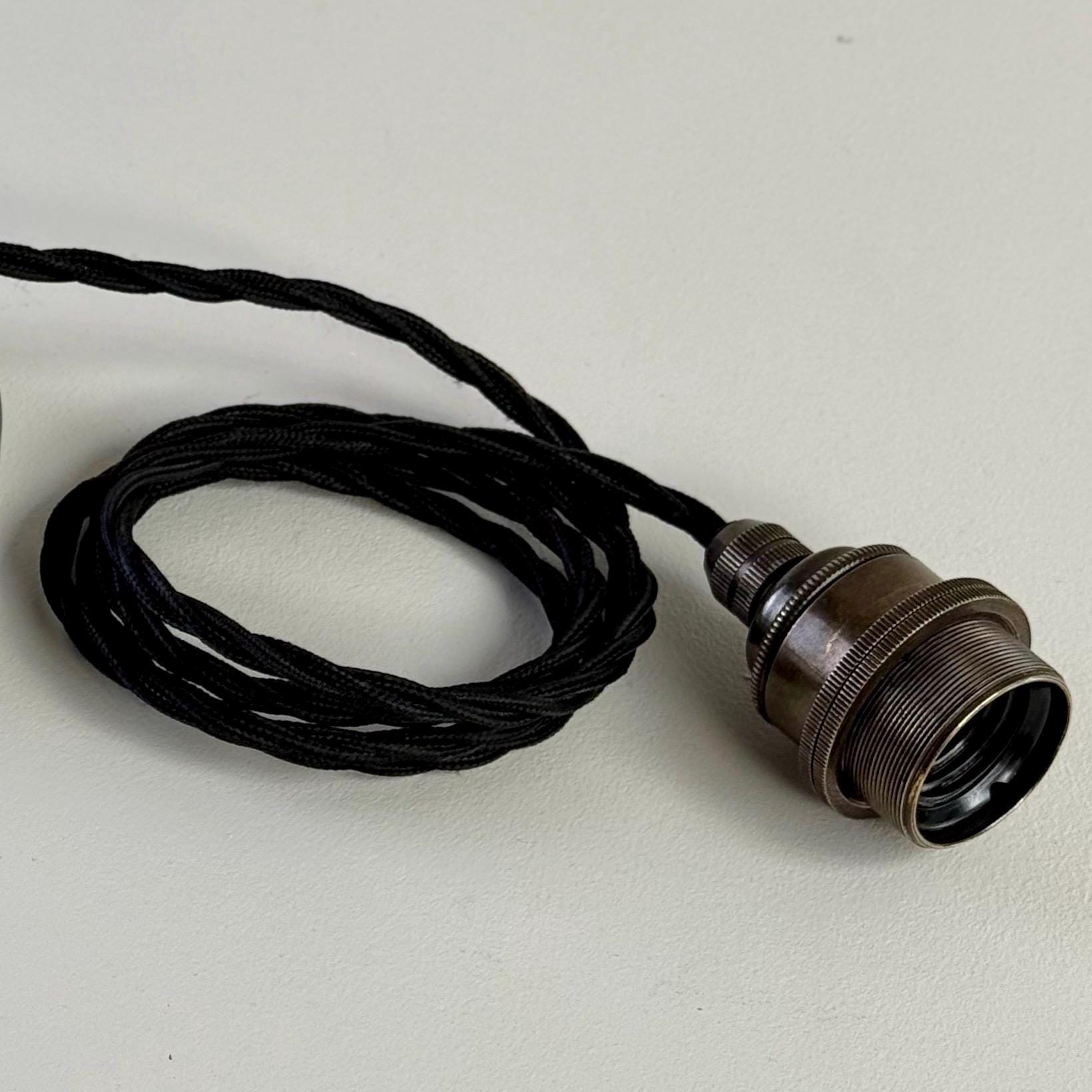 3 x Single bronze bulb holders pre-wired with black vintage twist fabric flex cable connected to the holder only, enabling height to be easily adjusted to suit desired drop height (Each with cable length of 150cm / 59” - electrician recommended for installation). We supply with all the electrical fittings that are needed, for an easy install).