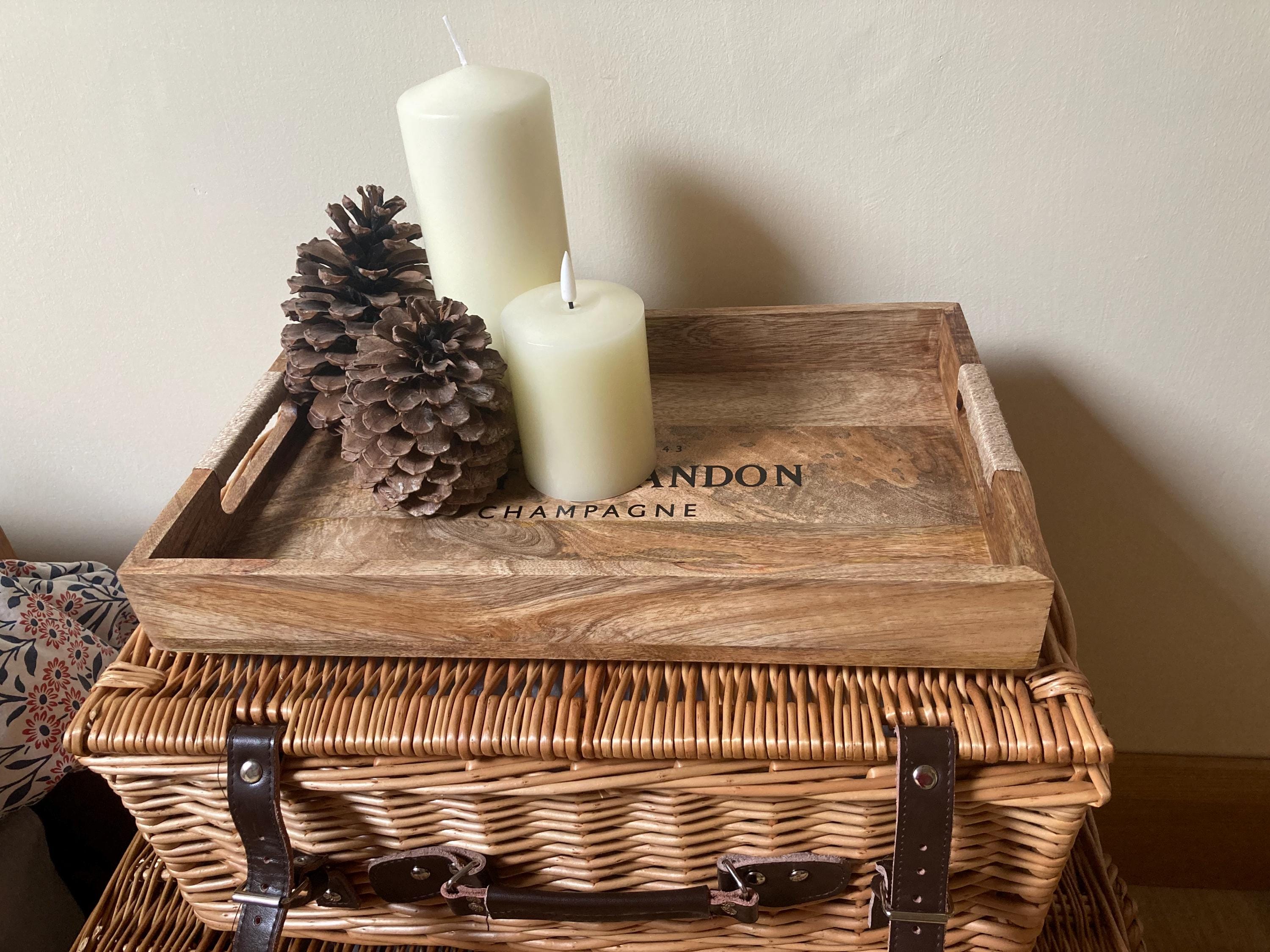 Lovely tray. Perfect with candles, etc., for staging a bedroom, but also perfect for a drinks/tea tray.