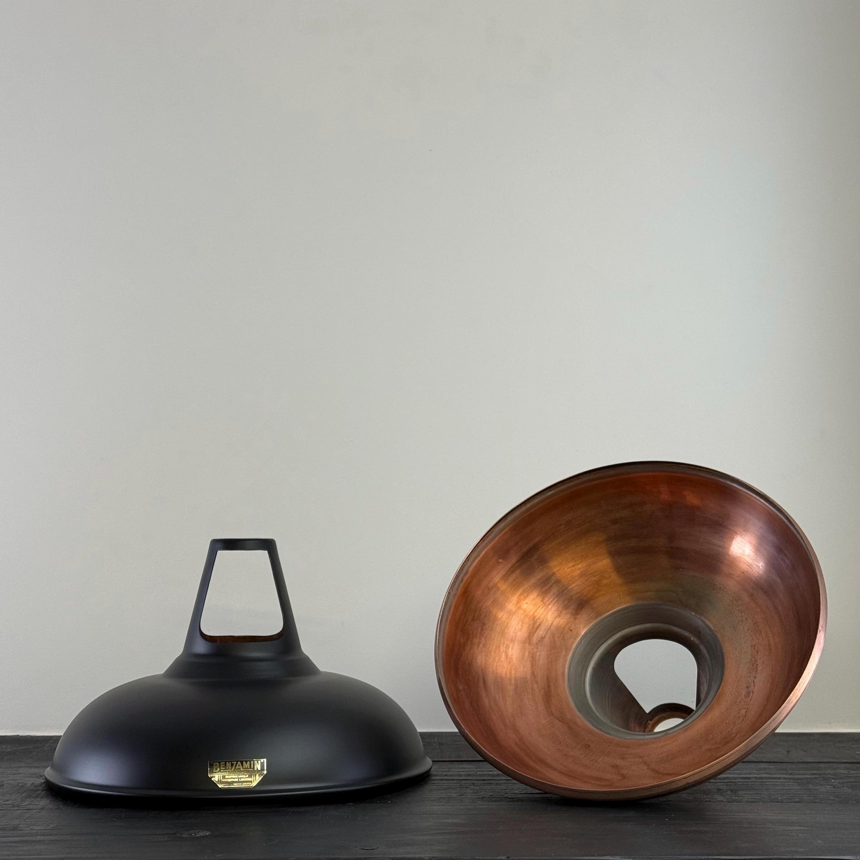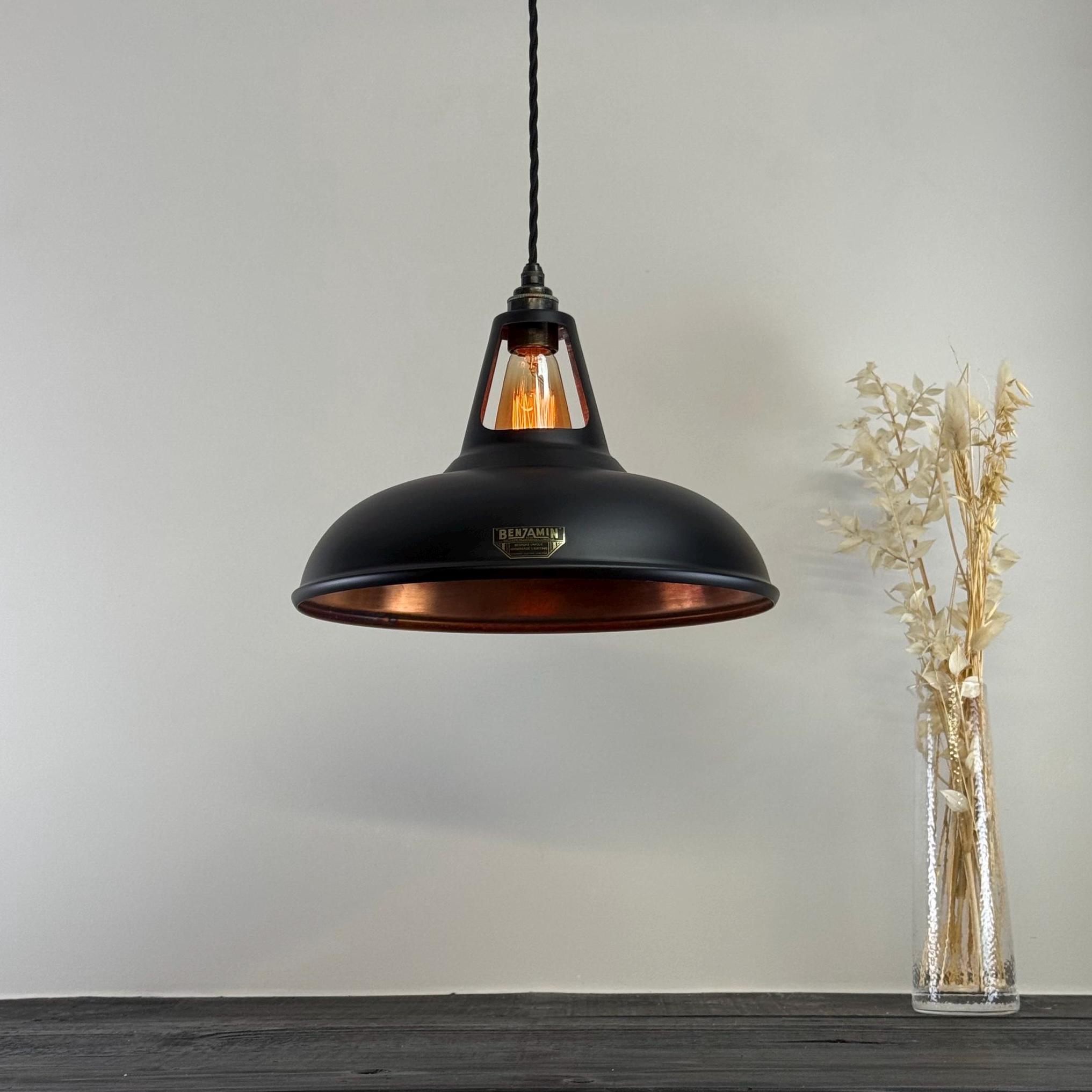 Shop our timeless pendant lighting, handspun from genuine solid steel, copper finished & coated in our vintage matt black finish. This shade is hand finished with pride by our artisans to give a beautiful, unique patina.