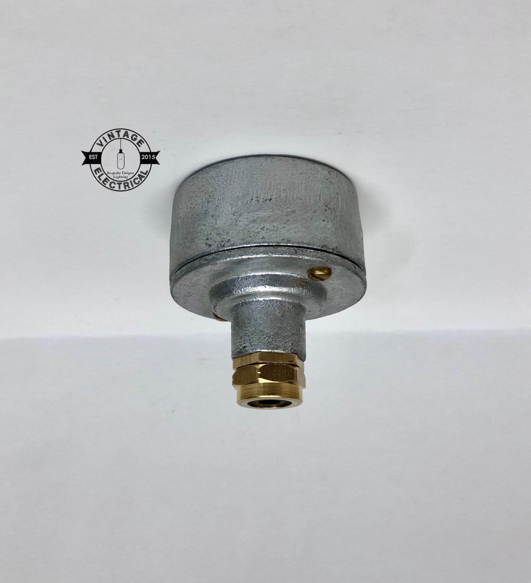 These industrial style ceiling roses are custom made by us to give your lighting installation a distinctive edge. With a solid brass gland