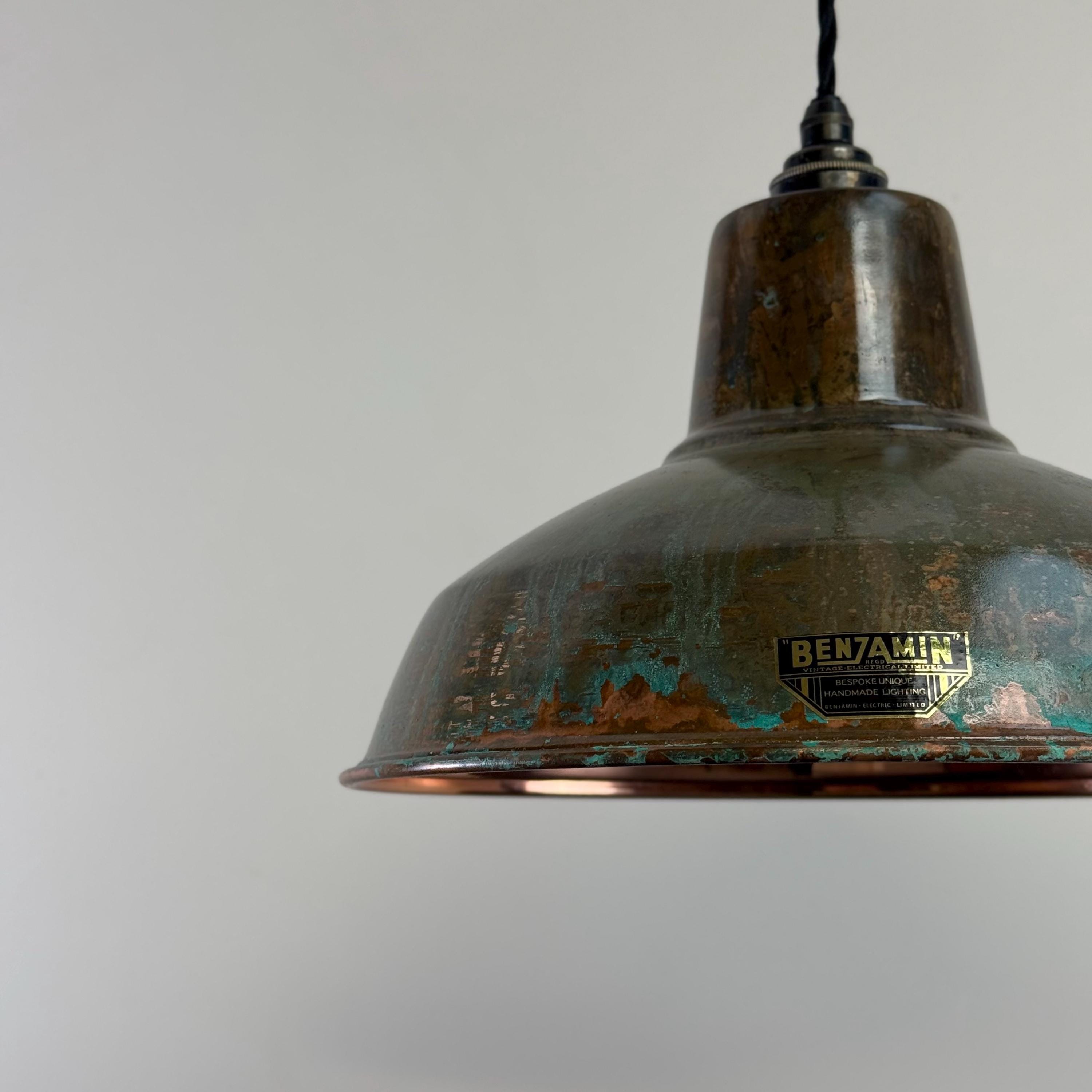 Filby ~ Made from solid copper, This shade is given beautiful hand finished blue Verdigris Patina.