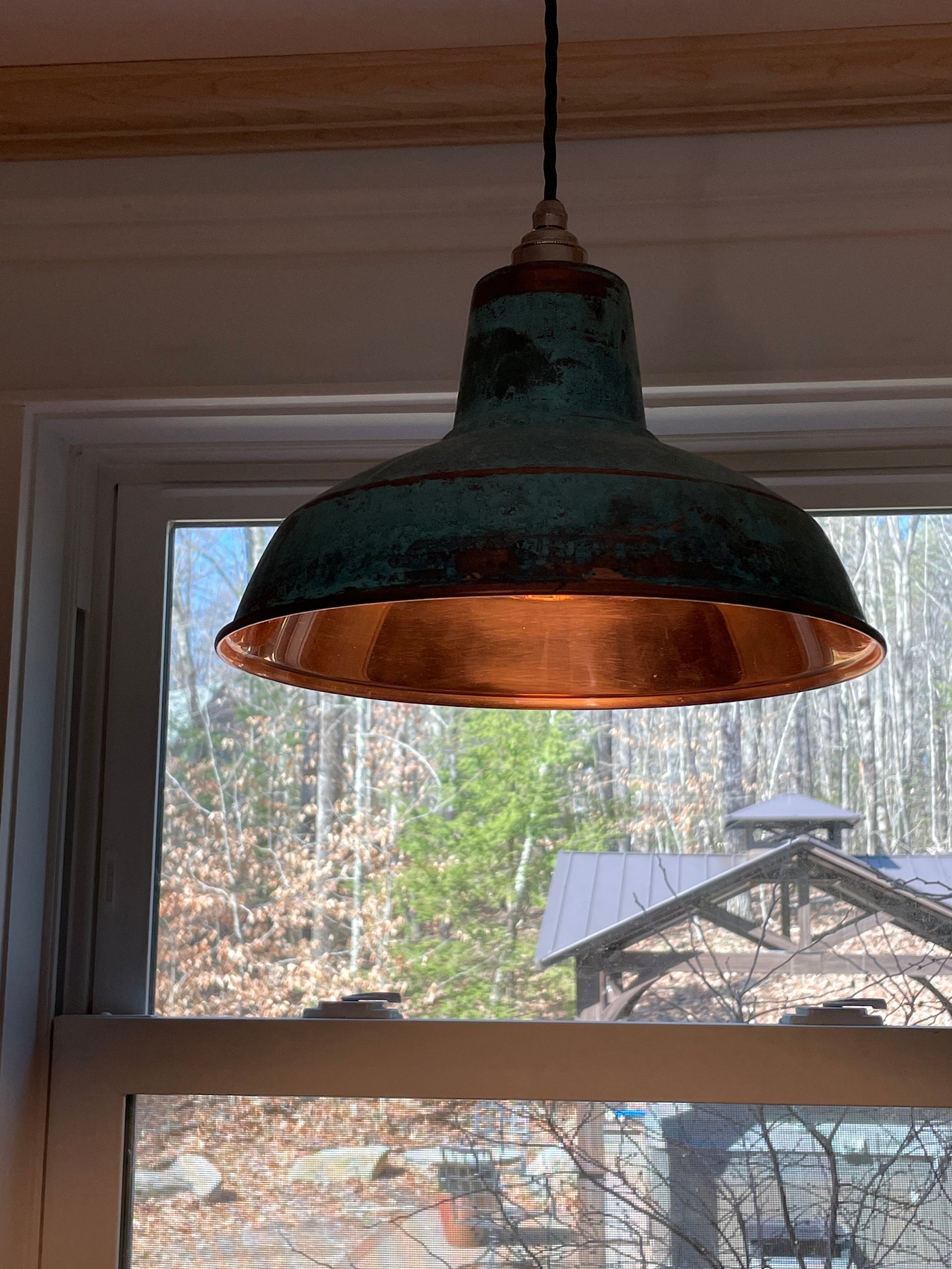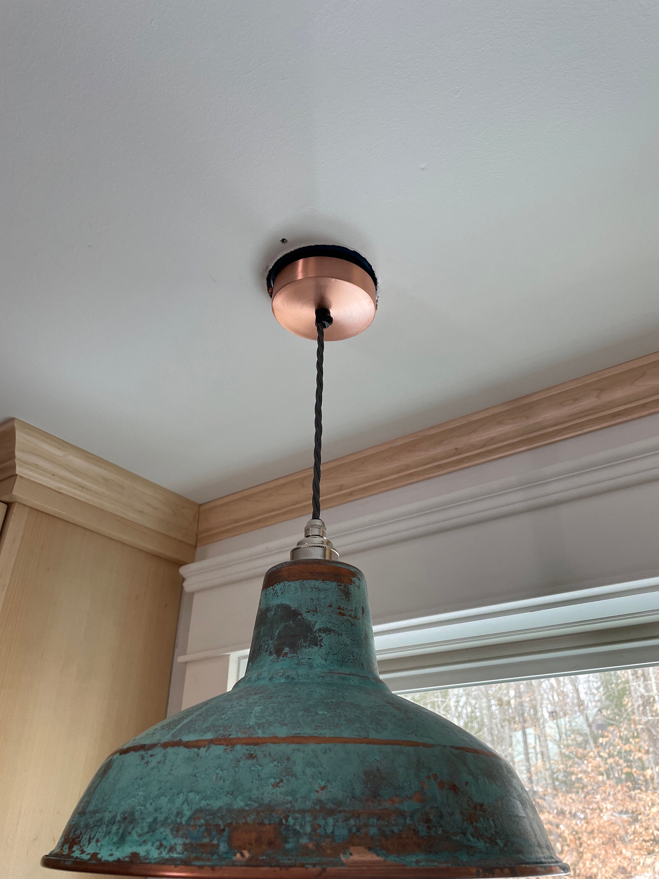 This is a piece of Art that so happens to light up. It is even better than the picture. It came in record time. I can’t wait to have it installed! Thank you Steve. 3/10 My electrician returned Today and here is where we ran into a problem. It was not until he was hanging it that we discovered the ceiling cap or Rose would not cover the standard US electrical box. It actually sat inside the box. Leaving the hole in the ceiling exposed all around the copper mount. The UK use a 4” cover. In the US our standard box is 4&1/2” which mean the US needs a 5” cover. The lamp is still beautiful! And I’m waiting to hear from Steve to see if I can purchase a larger cover for the one I have. And if he could make the ceiling cover on my second order 5”. If he can not do this I still love the Light and will find a way to use it.