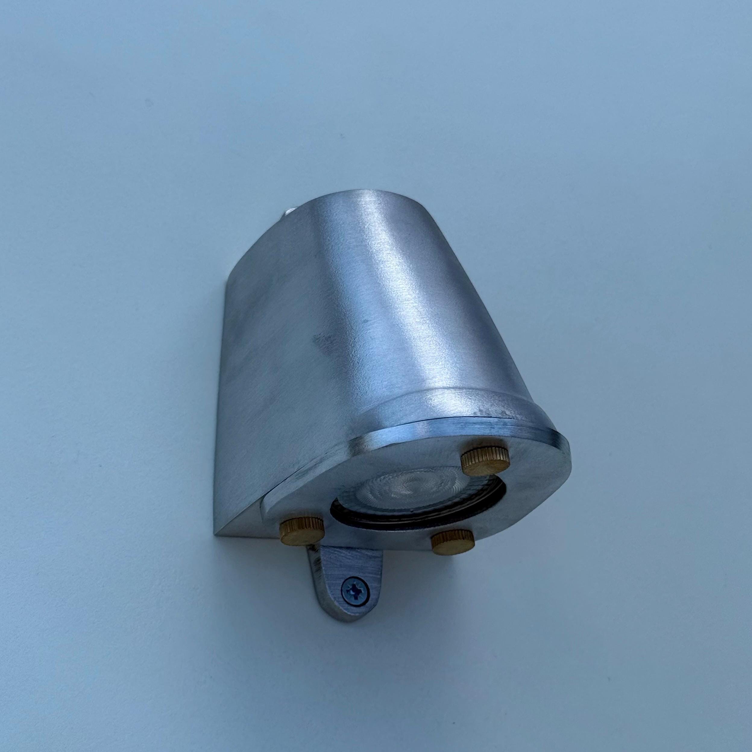 A timeless design from the mid 20th century, originally a mast-mounted fitting for illuminating yacht decks. Its shape ensured rigging lines were not snagged. This clean profile lends itself to being unobtrusive when required or being used as a stylish detail for both interior and exterior accent lighting.