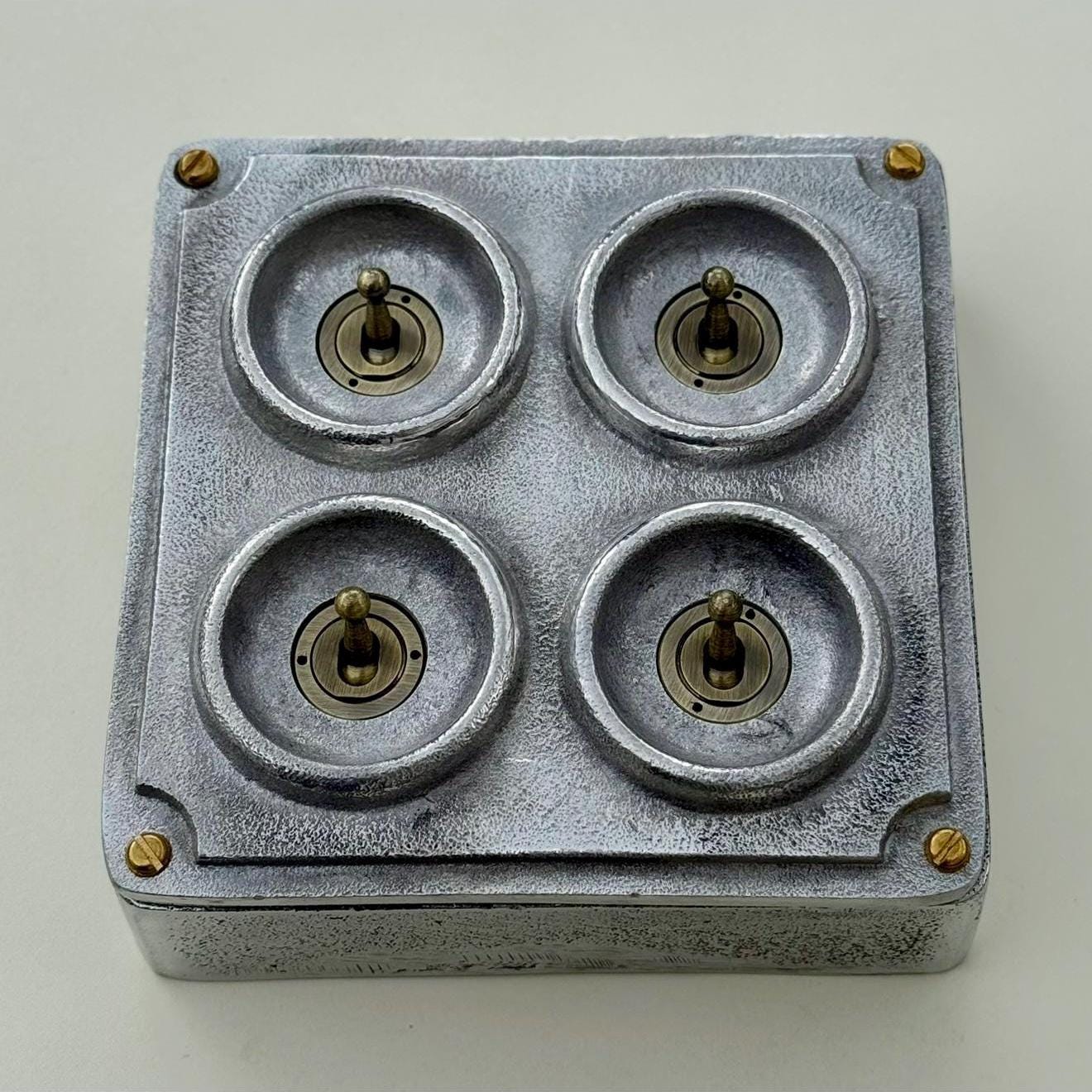 4 Gang 2 Way Switch Solid Cast Metal Light Switch 1950’S Industrial Style Vintage - BS EN Approved