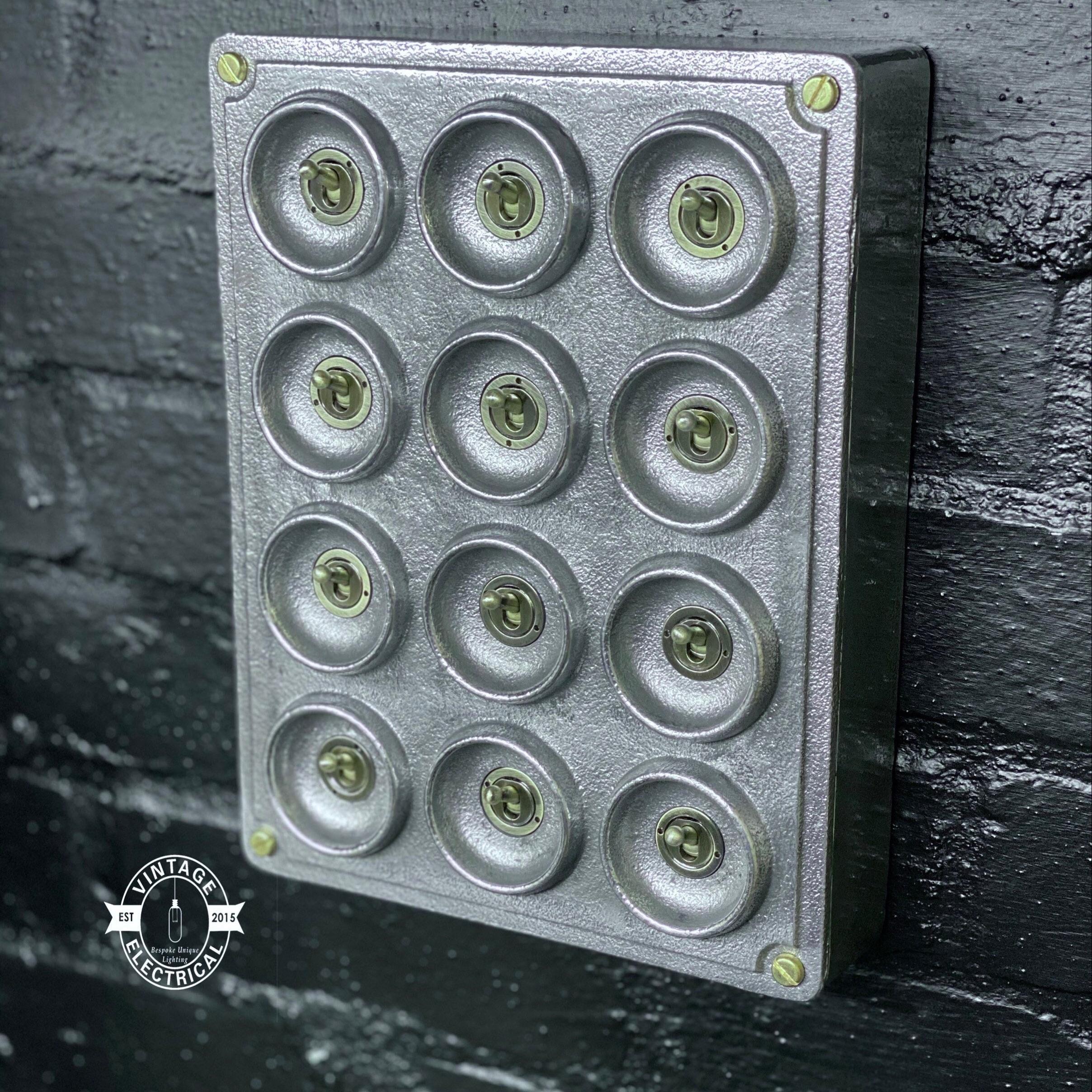 12 Gang 2 Way Switch Solid Cast Metal Light Switch 1950’S Industrial Style Vintage - BS EN Approved