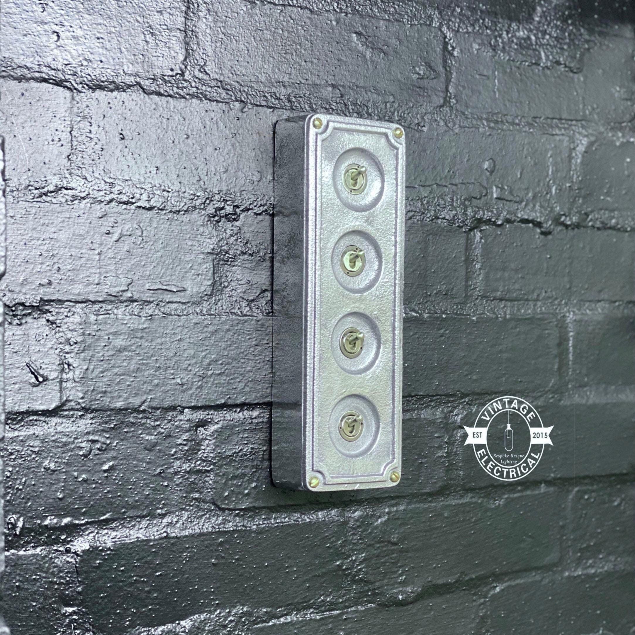 4 Gang 2 Way Switch Solid Cast Metal Light Switch 1950’S Industrial Style Vintage - BS EN Approved