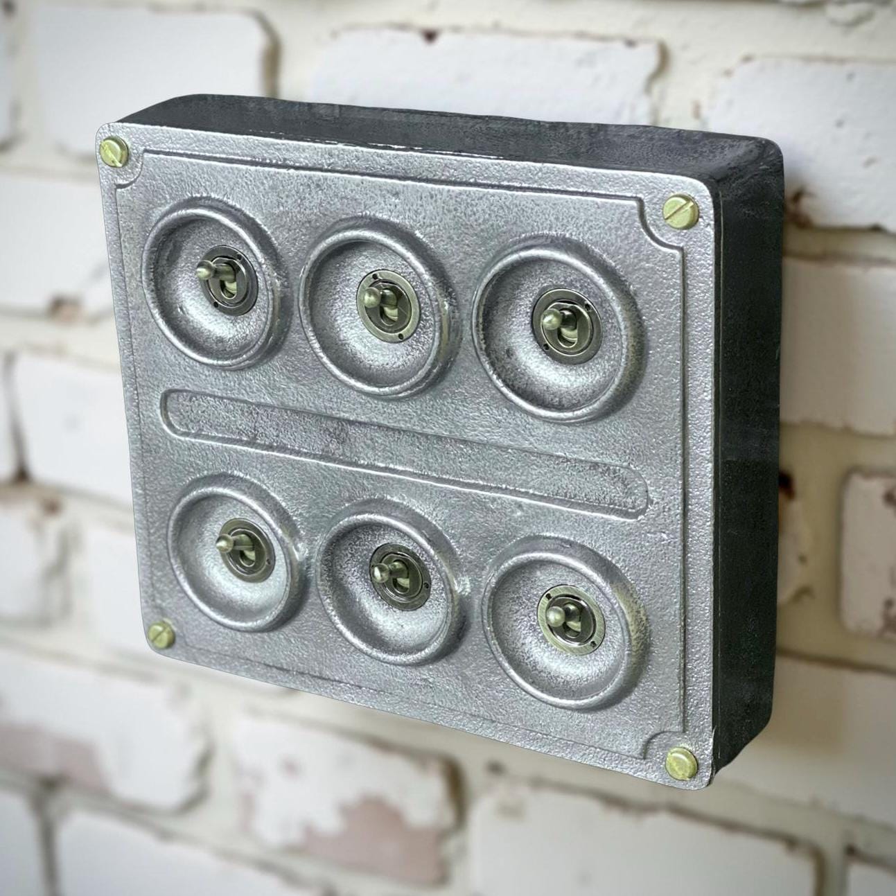 Six Gang 2 Way Switch Solid Cast Metal Light Switch 1950’S Industrial Style Vintage - BS EN Approved